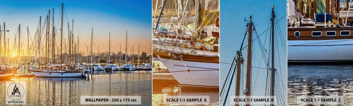 Fototapeten Muster Premium Sand - Der Wind muss auch schlafen - Landschaft, Yachthafen, Segelboot - 100x30 cm