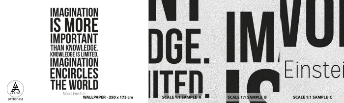 Fototapeten Muster Premium Sand - Einstein über die Kraft der Vorstellungskraft - Typografie, Bejahung, Maxime - 100x30 cm
