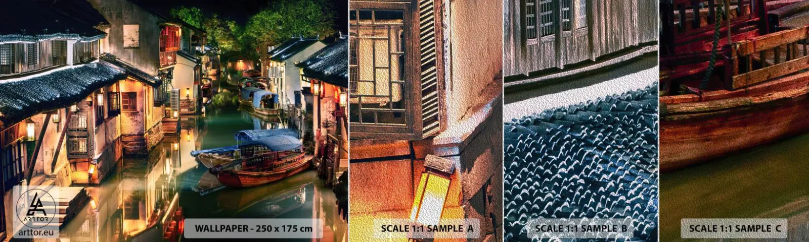 Fototapeten Muster Premium Sand - Ein Abend auf einer chinesischen Straße - Landschaft, Stadt, Asien - 100x30 cm