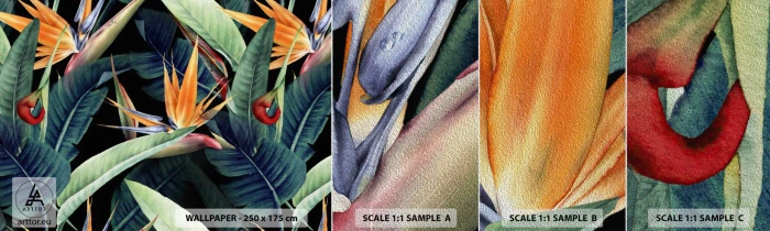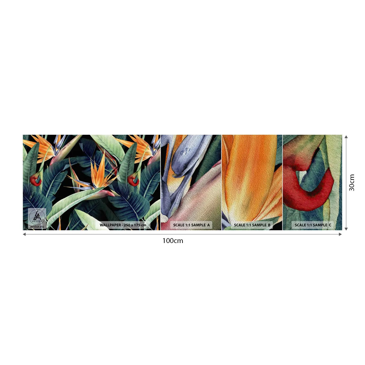 Fototapeten Muster Premium Sand - Flammende Blumen der Tropen - Strelitzia Royal, Blume, Afrika - 100x30 cm