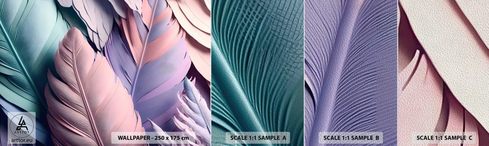 Fototapeten Muster Premium Sand - Vogel-Chic - Pastell, Gefieder, Leichtigkeit - 100x30 cm