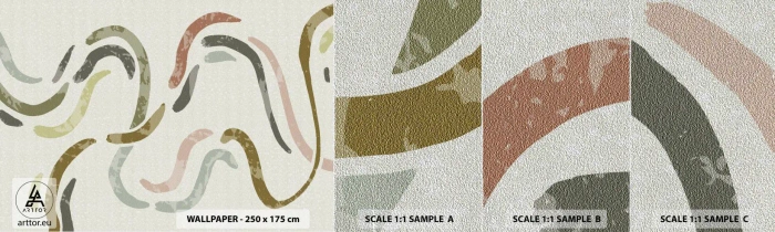 Fototapeten Muster Premium Sand - Fröhlicher Tanz der Abstraktion - Pastell, Minimalistisch, Hell - 100x30 cm