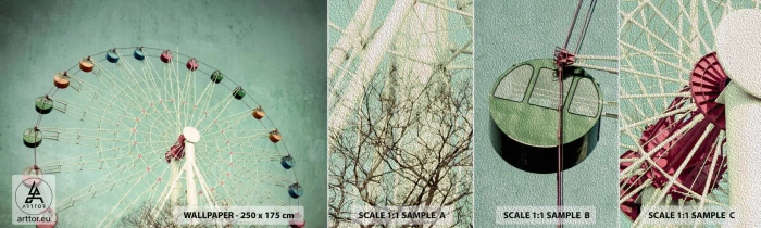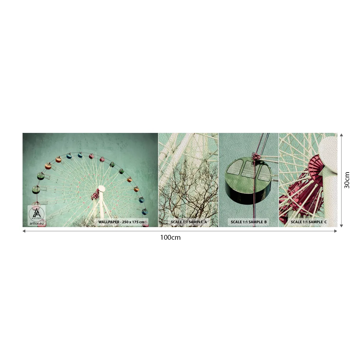 Fototapeten Muster Premium Sand - Wir laden zum Spiel ein - Riesenrad, Karussell, Jahrgang - 100x30 cm