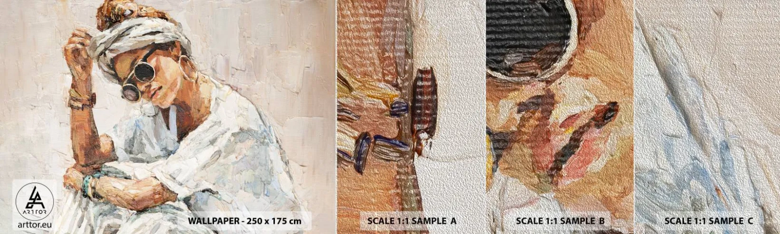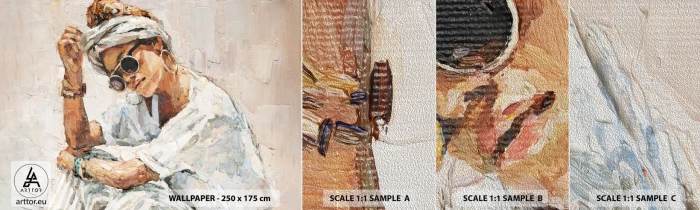 Fototapeten Muster Premium Sand - Porträt in voller Sonne - Porträt, Boho, Öl - 100x30 cm