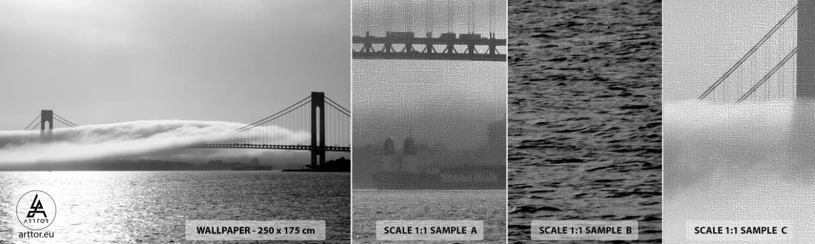 Hohe Grammatur 290g/m2 zusammen mit einer fühlbaren Struktur Leinwand auf der Oberfläche der Tapete macht das Produkt zu einer exklusiven und designorientierten Lösung für jeden, der auf der Suche nach einzigartigen Innenraumdekorationen ist. Der Vorteil des außergewöhnlichen Materials in dicker Ausführung ist auch eine hervorragende Abdeckung, die gleichzeitig die Montage erheblich erleichtert. Struktur Fototapete PREMIUM CANVAS vermittelt den Eindruck eines Drucks auf dickem Leinwand.