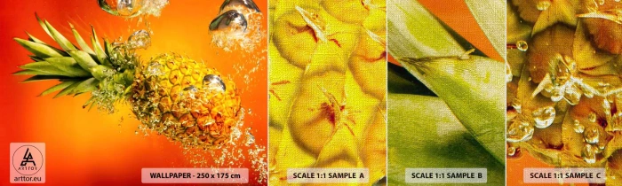 Fototapeten Muster Premium Canvas - Tropisch saftige Frische - Obst, Ananas, Wasser - 100x30 cm