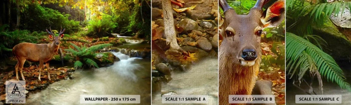 Fototapeten Muster Premium Canvas - Willkommen in meiner Welt - Landschaft, Tiere, Reh - 100x30 cm