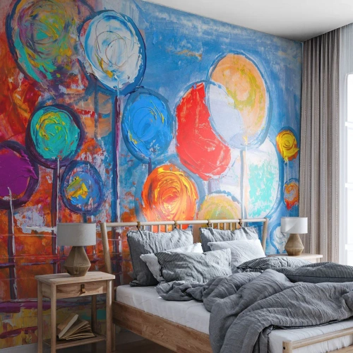 Selbstklebende Fototapete Deluxe Sticker - Wunder am Stiel - Bunte Luftballons, Abstraktion, Für Kinder - 100x70 cm