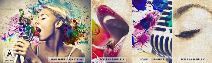 Fototapeten Muster Premium Canvas - Malen Sie die Welt mit Ihrer Stimme - Frau, Musik, 3D - 100x30 cm