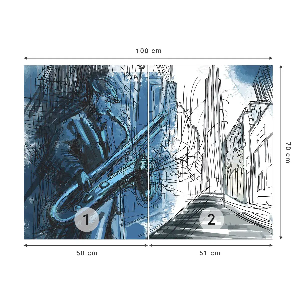 Selbstklebende Fototapete Deluxe Sticker - Urbane Rhapsodie - Saxophon, Jazz, Musik - 100x70 cm