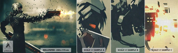 Fototapeten Muster Premium Canvas - Tödliche Waffe - Dein ganz eigener Terminator - Abstraktion, Fantasie, Zukünftiger Krieger - 100x30 cm