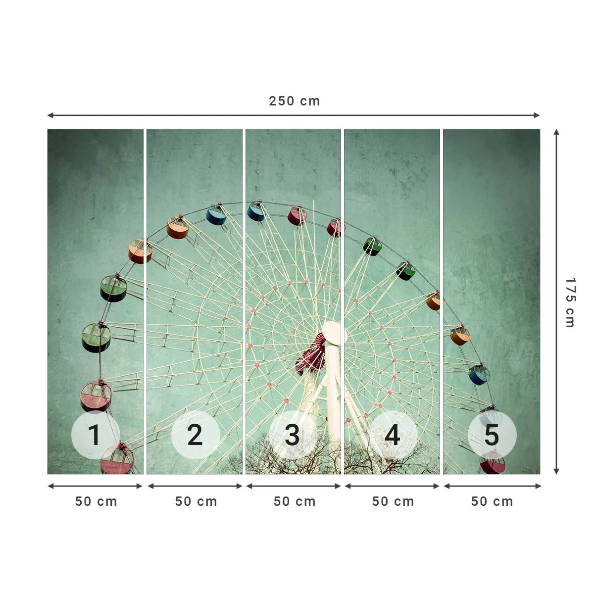 Fototapete Premium Sand - Wir laden zum Spiel ein - Riesenrad, Karussell, Jahrgang - 250x175 cm