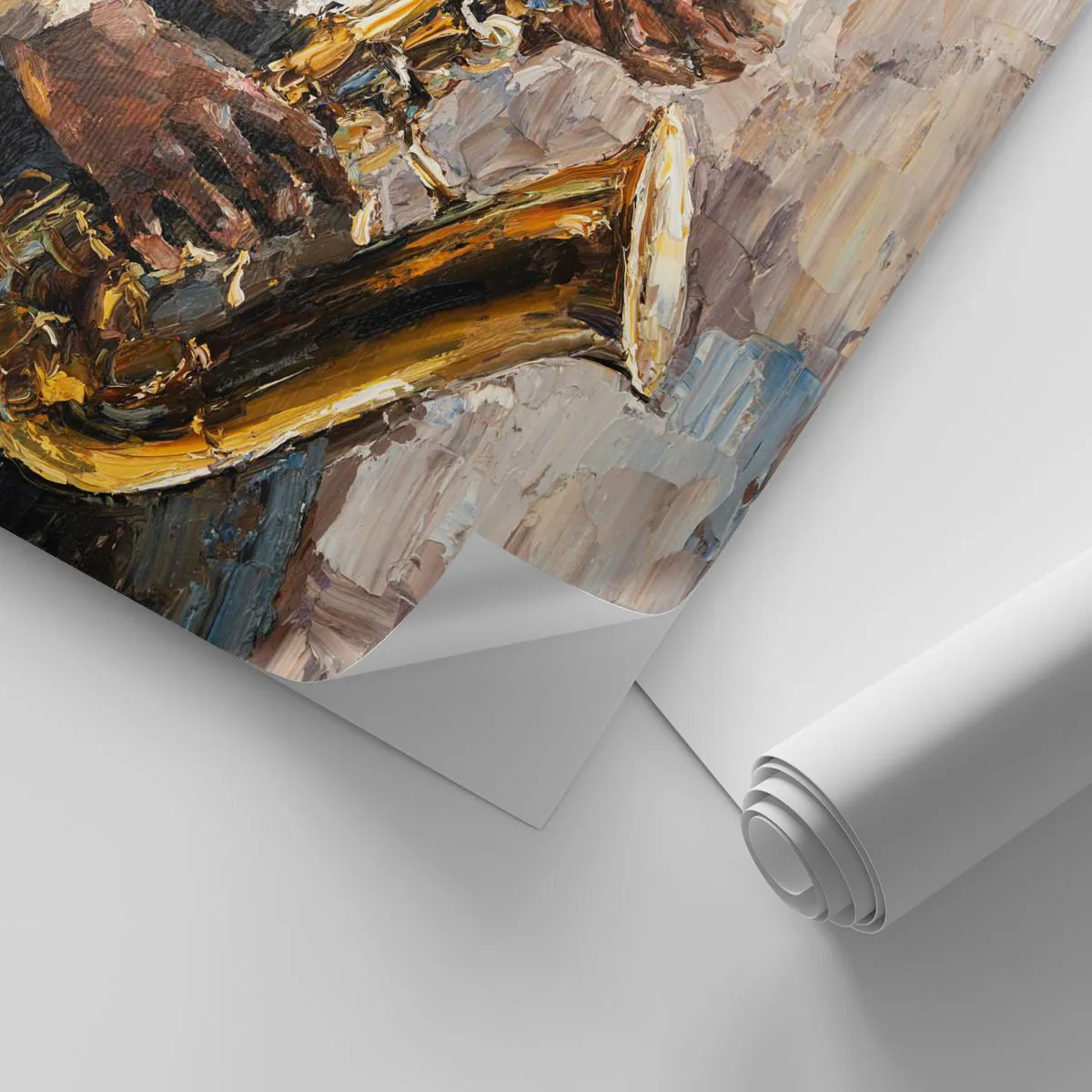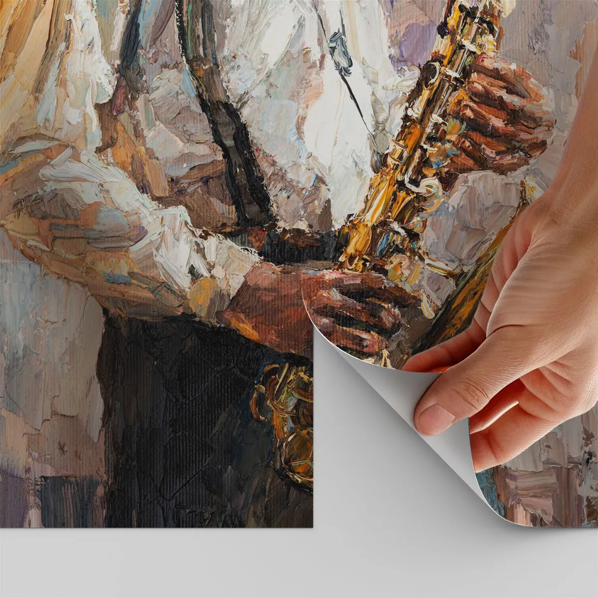 Selbstklebende Fototapete Deluxe Sticker - Zeit fürs Solo - Saxophon, Musik, Malerei - 100x70 cm