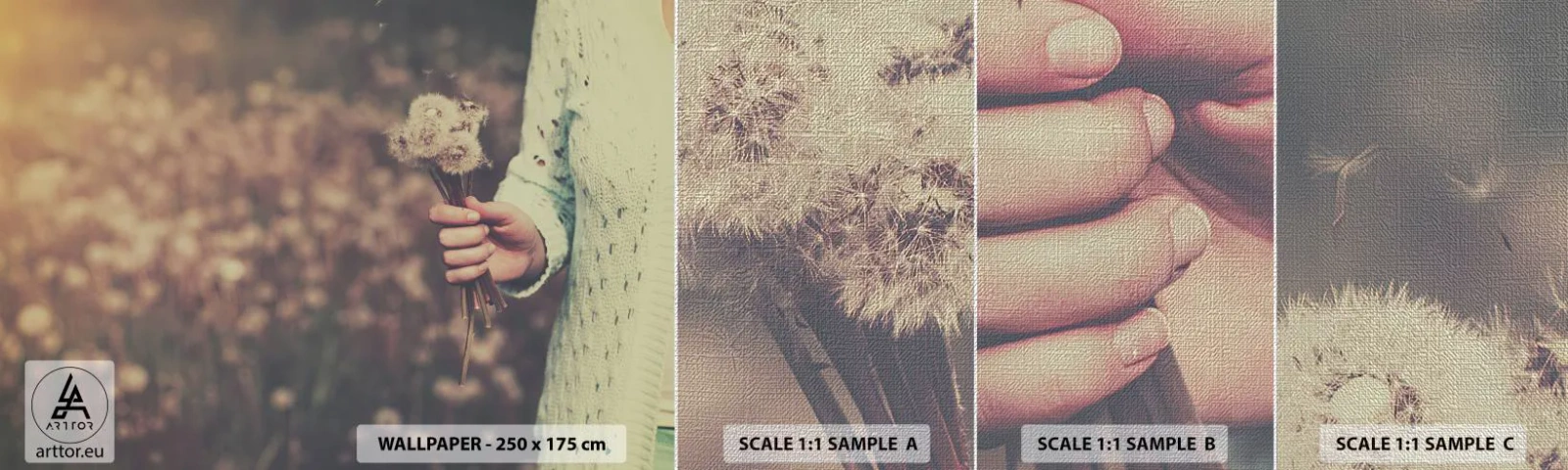 Fototapeten Muster Premium Canvas - Bitte behalte sie - Löwenzahn, Wiese, Natur - 100x30 cm