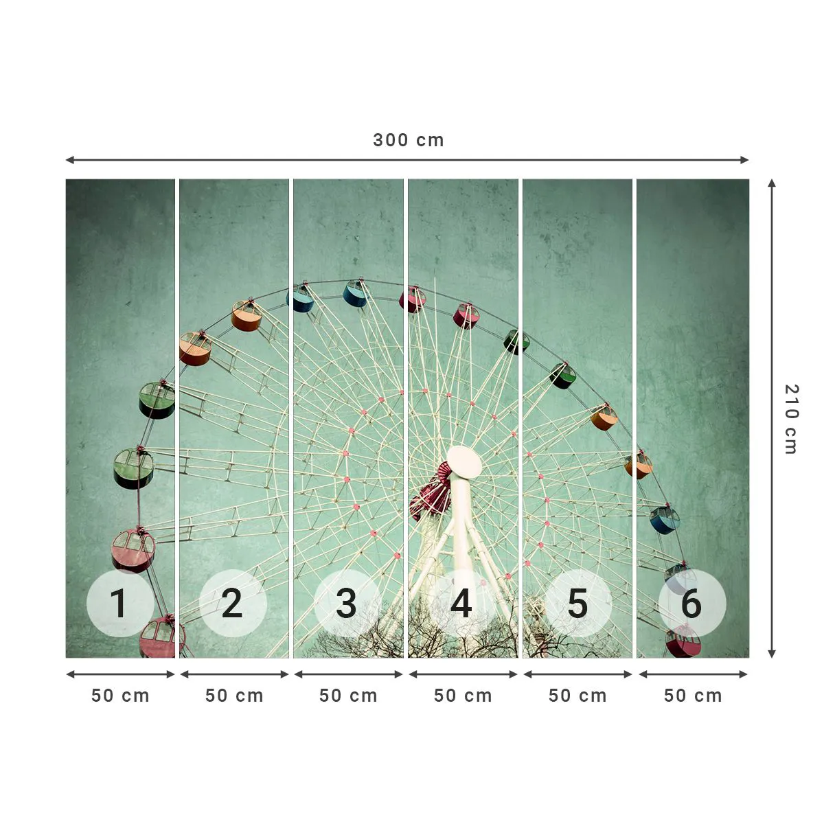 Fototapete Premium Sand - Wir laden zum Spiel ein - Riesenrad, Karussell, Jahrgang - 300x210 cm