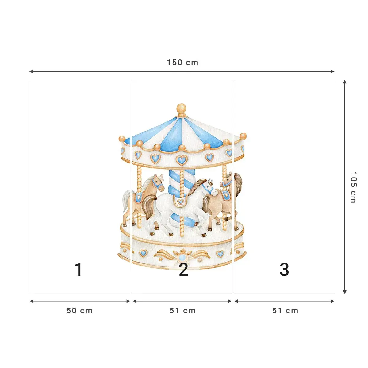 Selbstklebende Fototapete Deluxe Sticker - Süße Kindheit - Pferde, Karussell, Kinder - 150x105 cm