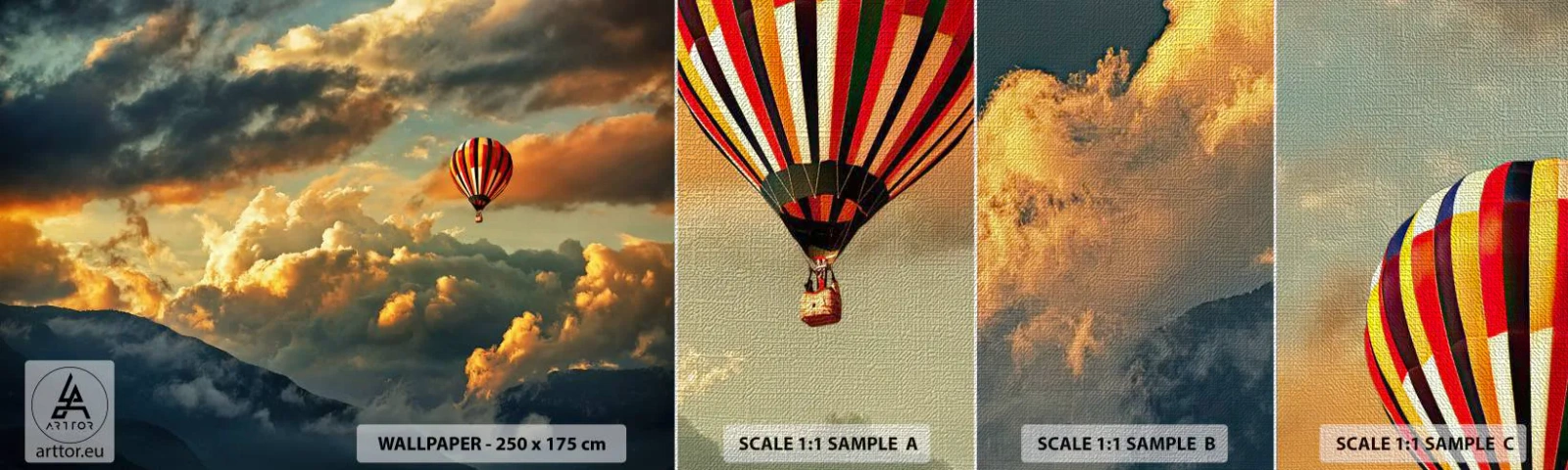 Fototapeten Muster Premium Canvas - Ich fliege, weil ich es will - Abstraktion, Ballonfahrt, Berge - 100x30 cm