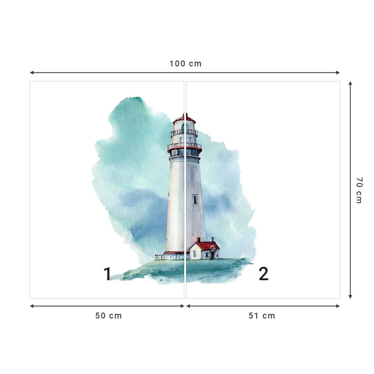 Selbstklebende Fototapete Deluxe Sticker - Sanfte Schwester vom Blau - Leuchtturm, Strand, Zeichnung - 100x70 cm
