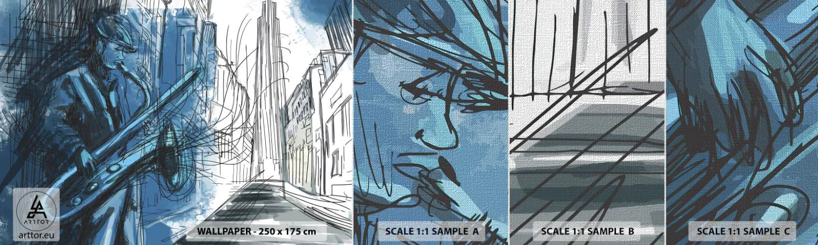 Fototapeten Muster Premium Canvas - Urbane Rhapsodie - Saxophon, Jazz, Musik - 100x30 cm