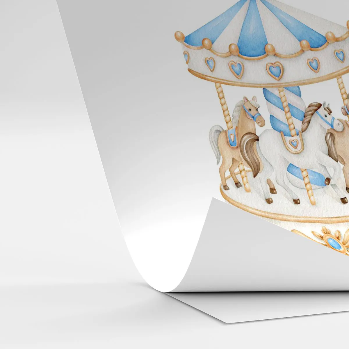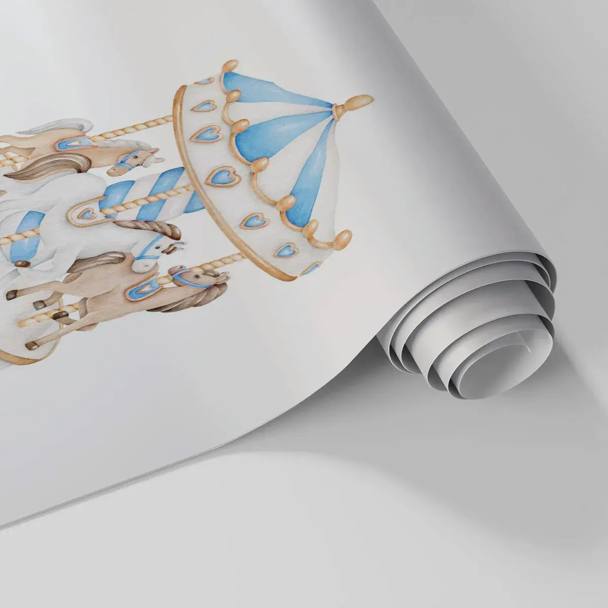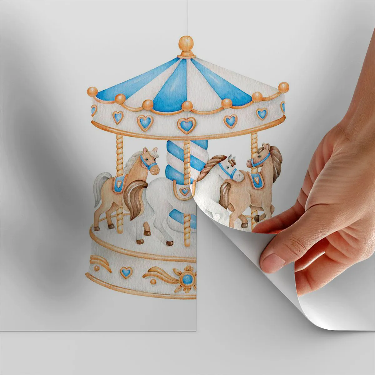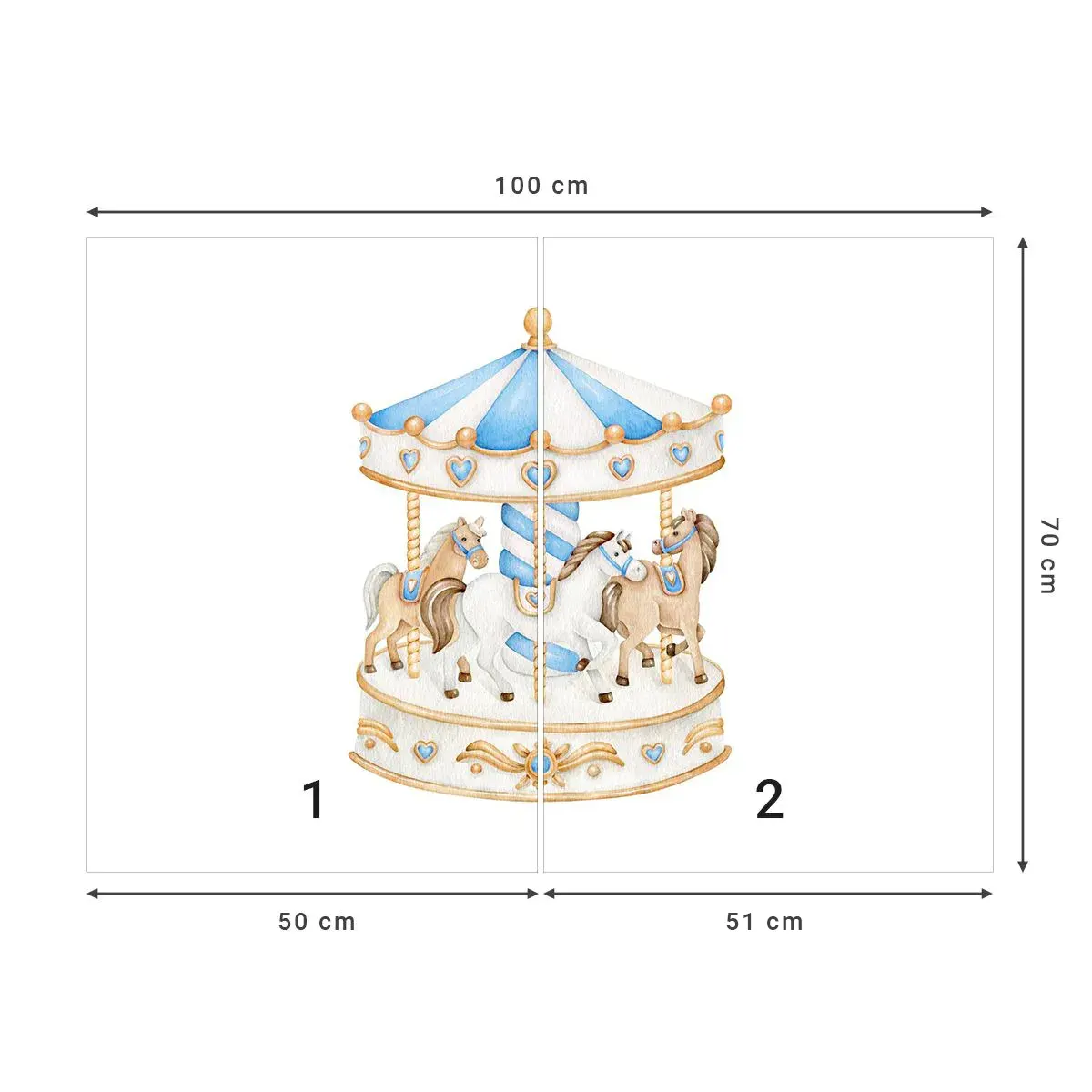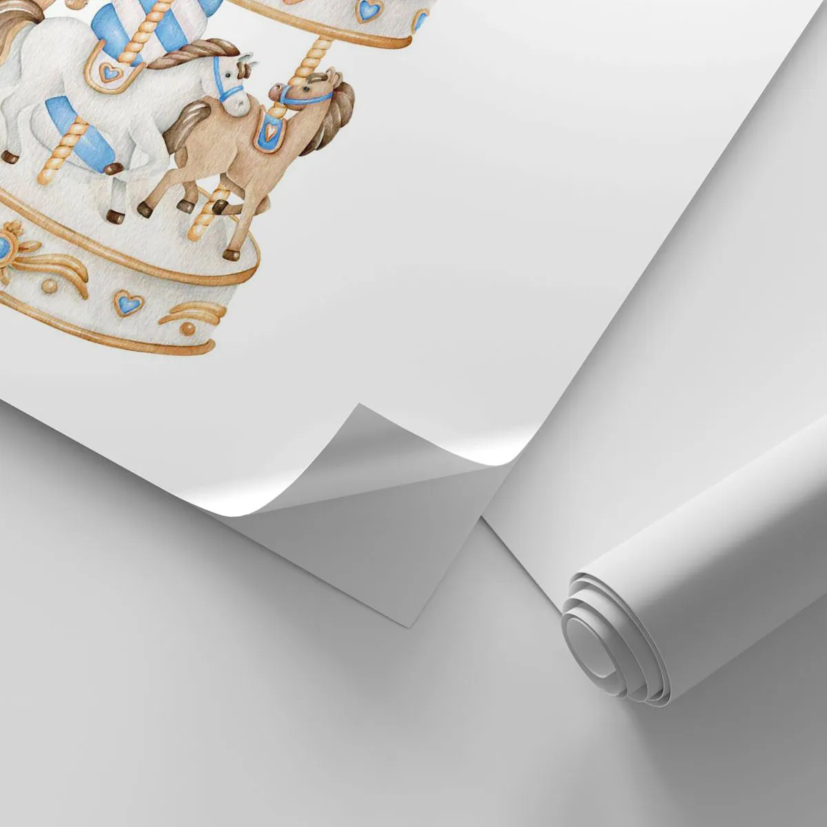 Selbstklebende Fototapete Deluxe Sticker - Süße Kindheit - Pferde, Karussell, Kinder - 100x70 cm