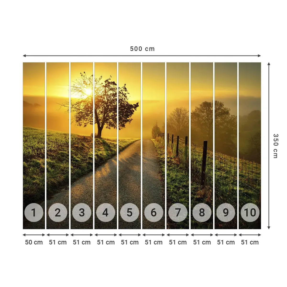 Selbstklebende Fototapete Deluxe Sticker - Honig-Nachmittag - Landschaft, Schotterstraße, Wiese - 500x350 cm