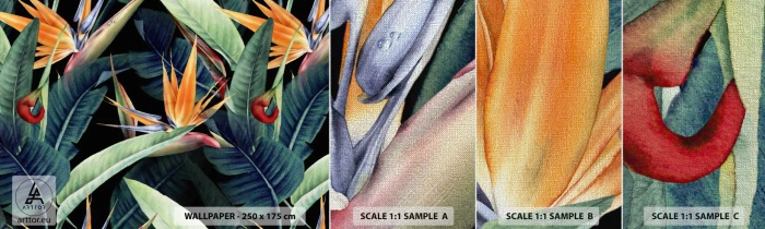 Fototapeten Muster Premium Canvas - Flammende Blumen der Tropen - Strelitzia Royal, Blume, Afrika - 100x30 cm