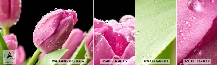 Fototapeten Muster Selbstklebend Deluxe Sticker - Lila Traum im Tau - Blumen, Tulpen, Blumenstrauß - 100x30 cm
