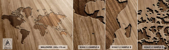 Fototapeten Muster Selbstklebend Deluxe Sticker - Die Welt liegt auf dem Tisch - Weltkarte, Holz, Kontinente - 100x30 cm