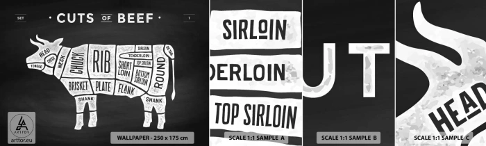 Fototapeten Muster Selbstklebend Deluxe Sticker - Metzger Grundierung - Gastronomie, Stier, Rindfleisch - 100x30 cm