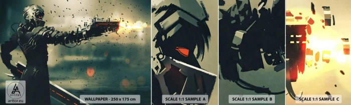 Fototapeten Muster Selbstklebend Deluxe Sticker - Tödliche Waffe - Dein ganz eigener Terminator - Abstraktion, Fantasie, Zukünftiger Krieger - 100x30 cm
