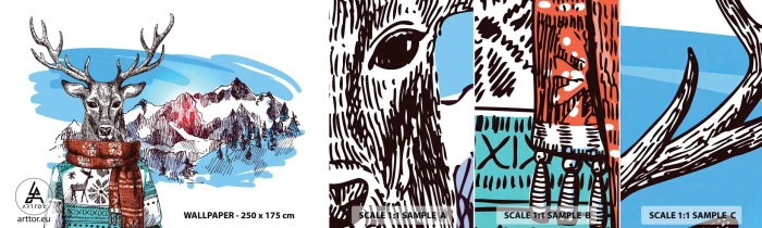 Fototapeten Muster Selbstklebend Deluxe Sticker - Auch ein Reh friert nicht - Abstraktion, Reh, Für Kinder - 100x30 cm
