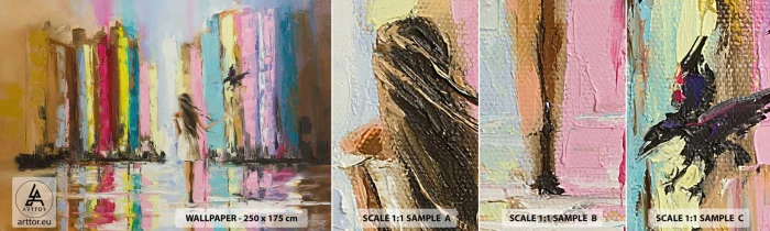 Hohe Grammatur 290g/m2 zusammen mit einer fühlbaren Struktur Leinwand auf der Oberfläche der Tapete macht das Produkt zu einer exklusiven und designorientierten Lösung für jeden, der auf der Suche nach einzigartigen Innenraumdekorationen ist. Der Vorteil des außergewöhnlichen Materials in dicker Ausführung ist auch eine hervorragende Abdeckung, die gleichzeitig die Montage erheblich erleichtert. Struktur Fototapete PREMIUM CANVAS vermittelt den Eindruck eines Drucks auf dickem Leinwand.