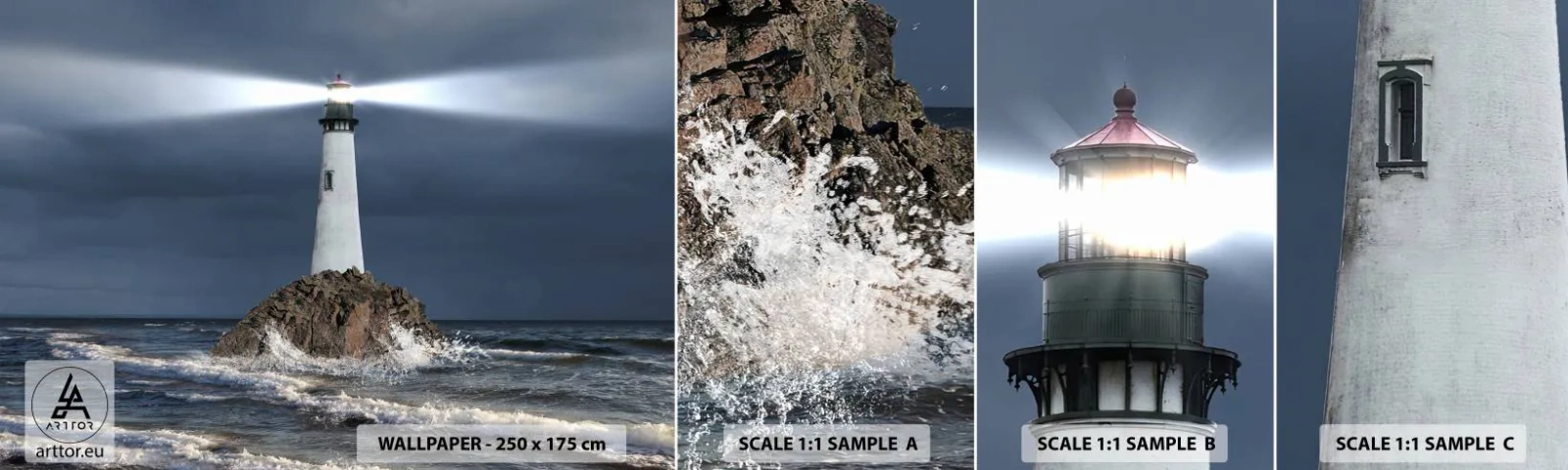 Fototapeten Muster Selbstklebend Deluxe Sticker - Hier... hier... hier! - Landschaft, Leuchtturm, Insel - 100x30 cm