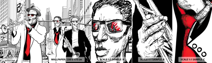 Fototapeten Muster Selbstklebend Deluxe Sticker - Urbane Rhapsodie in Schwarz und Rot - New York, Jazz, Musik - 100x30 cm