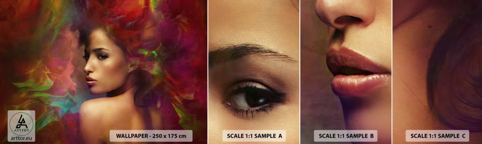 Hohe Grammatur 290g/m2 zusammen mit einer fühlbaren Struktur Leinwand auf der Oberfläche der Tapete macht das Produkt zu einer exklusiven und designorientierten Lösung für jeden, der auf der Suche nach einzigartigen Innenraumdekorationen ist. Der Vorteil des außergewöhnlichen Materials in dicker Ausführung ist auch eine hervorragende Abdeckung, die gleichzeitig die Montage erheblich erleichtert. Struktur Fototapete PREMIUM CANVAS vermittelt den Eindruck eines Drucks auf dickem Leinwand.