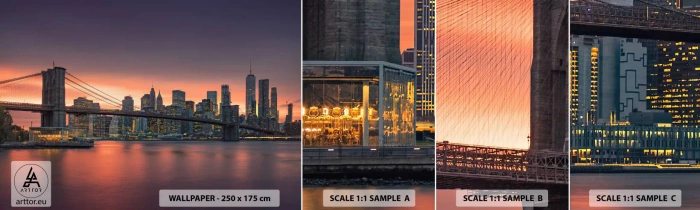 Fototapeten Muster Selbstklebend Deluxe Sticker - Eingetaucht in lila Stille - New York, Stadt, Brooklyn Brücke - 100x30 cm