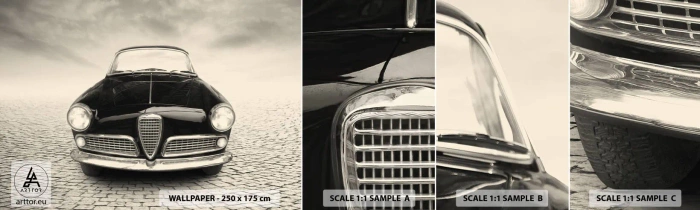 Fototapeten Muster Selbstklebend Deluxe Sticker - Man muss mich einfach lieben - Auto, Jahrgang, Schwarz und weiß - 100x30 cm