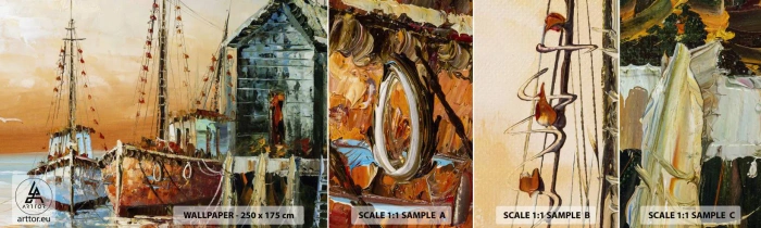 Fototapeten Muster Selbstklebend Deluxe Sticker - Friedliche Rückkehr - Fischerboot, Fischereihafen, Stück - 100x30 cm