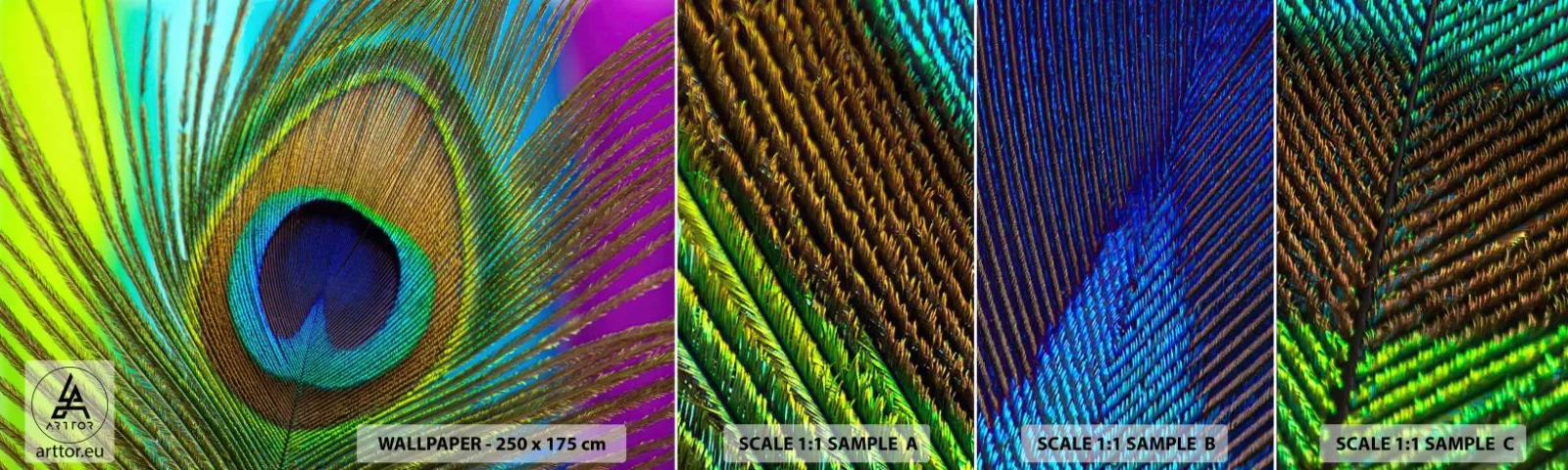 Fototapeten Muster Selbstklebend Deluxe Sticker - Auge in Auge - Abstraktion, Pfauenfeder, Stück - 100x30 cm