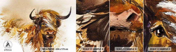 Fototapeten Muster Selbstklebend Deluxe Sticker - Stolz des Jägers - Tiere, Abstraktion, Schottischer Büffel - 100x30 cm