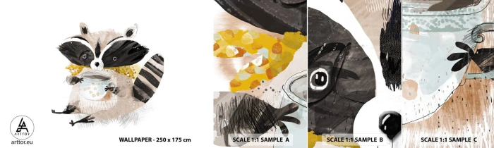 Fototapeten Muster Selbstklebend Deluxe Sticker - Mein Freund der Waschbär - Für Kinder, Waschbär, Grafik - 100x30 cm