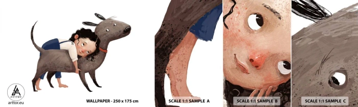 Fototapeten Muster Selbstklebend Deluxe Sticker - Beste Freunde - Für Kinder, Hund, Mädchen - 100x30 cm