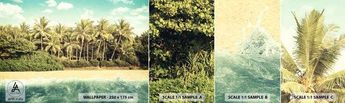 Fototapeten Muster Selbstklebend Deluxe Sticker - Wie wäre es hier? - Landschaft, Strand, Kokusnuss-Palme - 100x30 cm