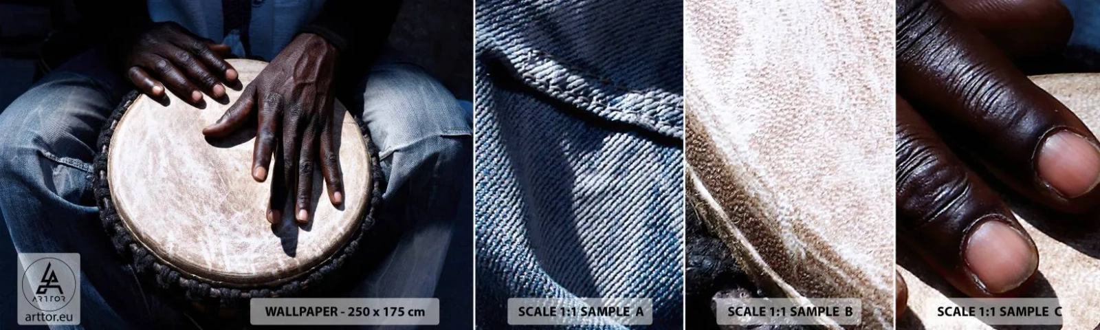 Fototapeten Muster Selbstklebend Deluxe Sticker - Lebe in deinem eigenen Rhythmus - Trommel, Musik, Afrika - 100x30 cm