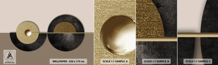 • Kreise, Abstrakt, Art Deco, Abstraktionen, Für das Büro, für das Arbeitszimmer, für das Esszimmer, für den Flur, für das Wohnzimmer, für das Schlafzimmer, Braun, Schwarz, Gold
