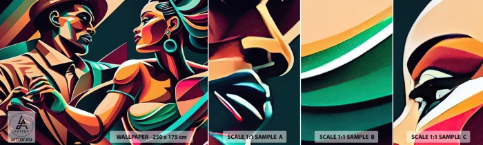 Fototapeten Muster Selbstklebend Deluxe Sticker - Im Rhythmus des Herzens - Kubismus, Paar, Tanzen - 100x30 cm