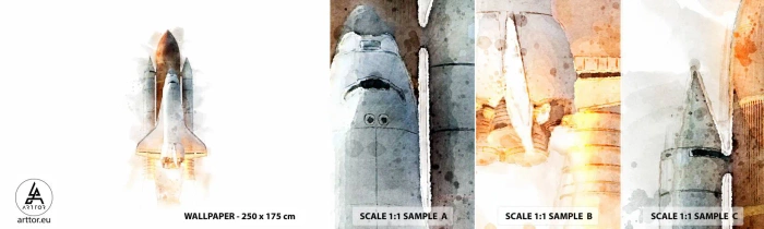 Fototapeten Muster Selbstklebend Deluxe Sticker - Entdecker für den Anfang - Eine Weltraumrakete, Kosmos, Minimalismus - 100x30 cm