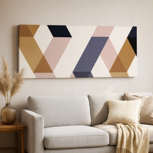 Das Hauptelement des Gemäldes sind rechteckige und dreieckige Formen, die in einer harmonischen, dynamischen Komposition angeordnet sind. Die Farben und subtilen Tonübergänge verleihen dem Werk einen luxuriösen und raffinierten Charakter, der perfekt für Wohnzimmer, Büros und Schlafzimmer geeignet ist.