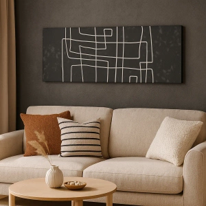 Dank seiner minimalistischen Form passt das Gemälde perfekt in die Ästhetik moderner und eleganter Innenräume. Der dunkle Hintergrund betont den Kontrast zwischen den Linien des geometrischen Musters und verleiht ihm Tiefe und künstlerischen Charakter. Dieses universelle Motiv eignet sich perfekt für Wohnzimmer, Schlafzimmer oder Büro und bringt Harmonie und Stil in den Raum.