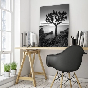 Glasbild - Bild auf glas - Ein Baum auf einer Klippe mit Blick auf die Bucht - 50x70cm - Stille bis zum Horizont - Moderne Wanddekoration für Wohnzimmer und Schlafzimmer ARTTOR